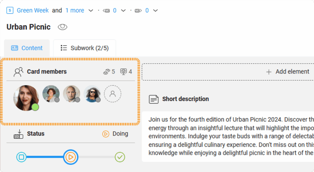 Card members are users assigned to cards. Assigning users allows you to delegate tasks and ensure that everyone knows their responsibilities.