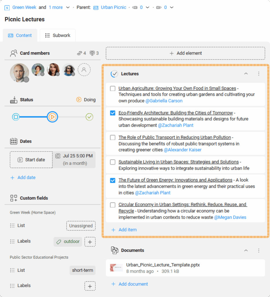 In KanBo, documents do not exist on their own. They always exist in context — inside spaces and cards — where they are created, discussed, and used.