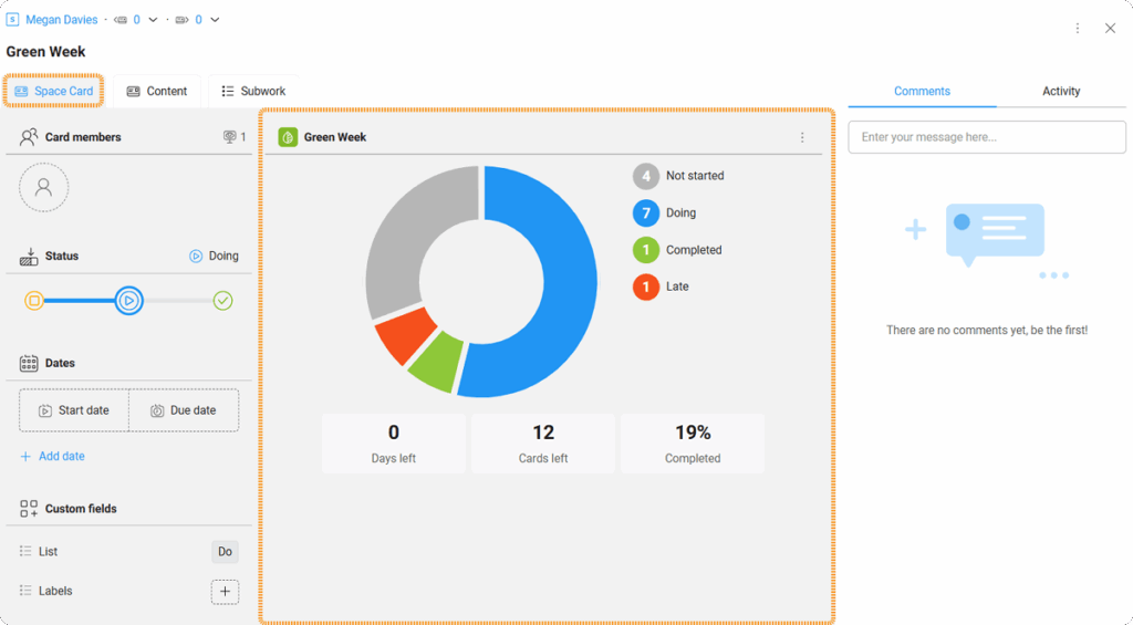 Inside each Card, KanBo provides additional progress signals: