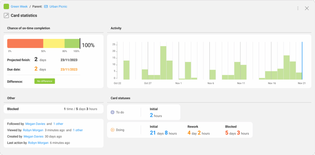The card statistics feature offers a wealth of analytical insights to help users gain a comprehensive understanding of their card realization process. It provides a visual representation of a card’s lifecycle.